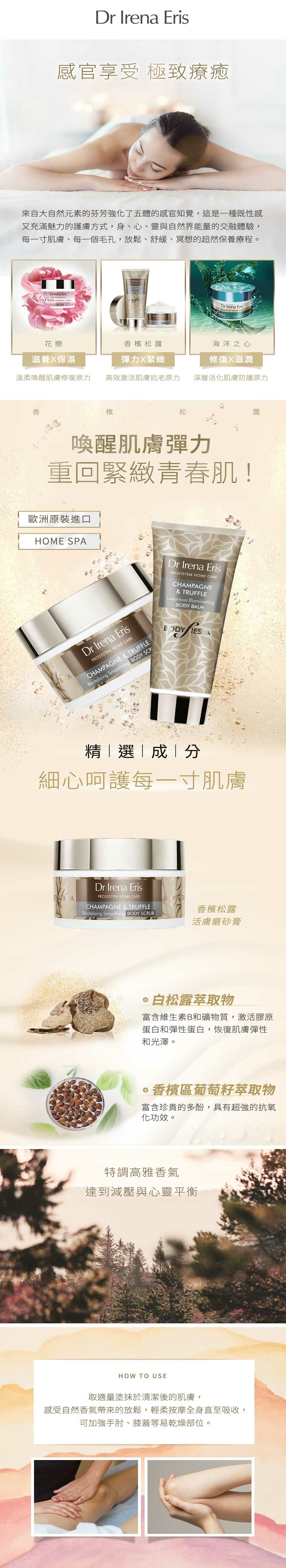 富含礦物質和維生素B的白松露萃取物,為肌膚提供最佳的保濕和緊緻度。