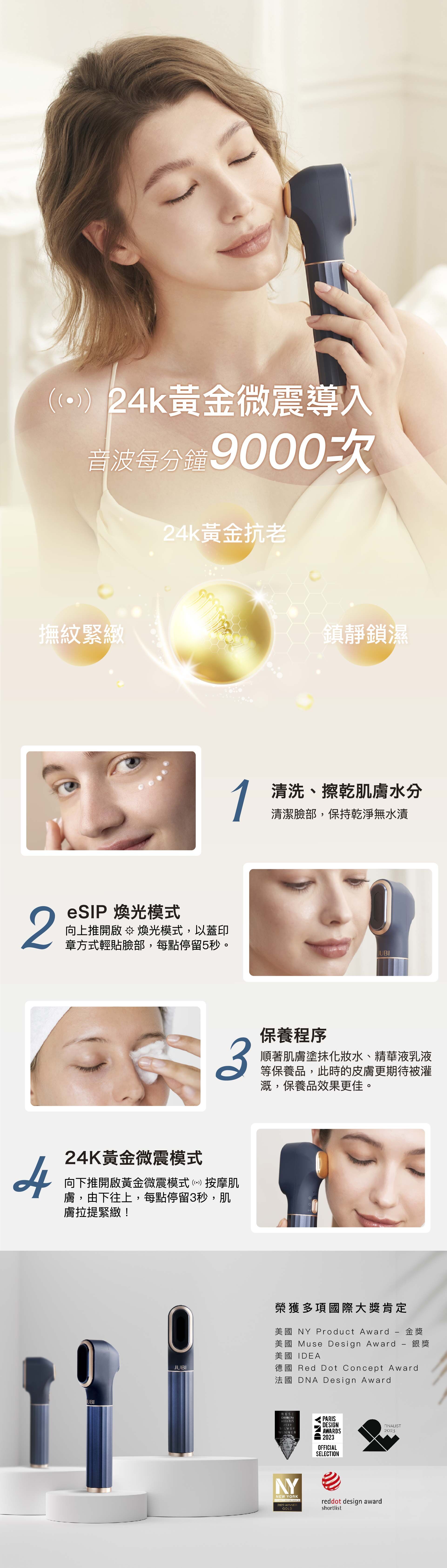 .24K金 黃金微震音波按摩 - 每分鐘9000次音波震動 鎮靜鎖濕