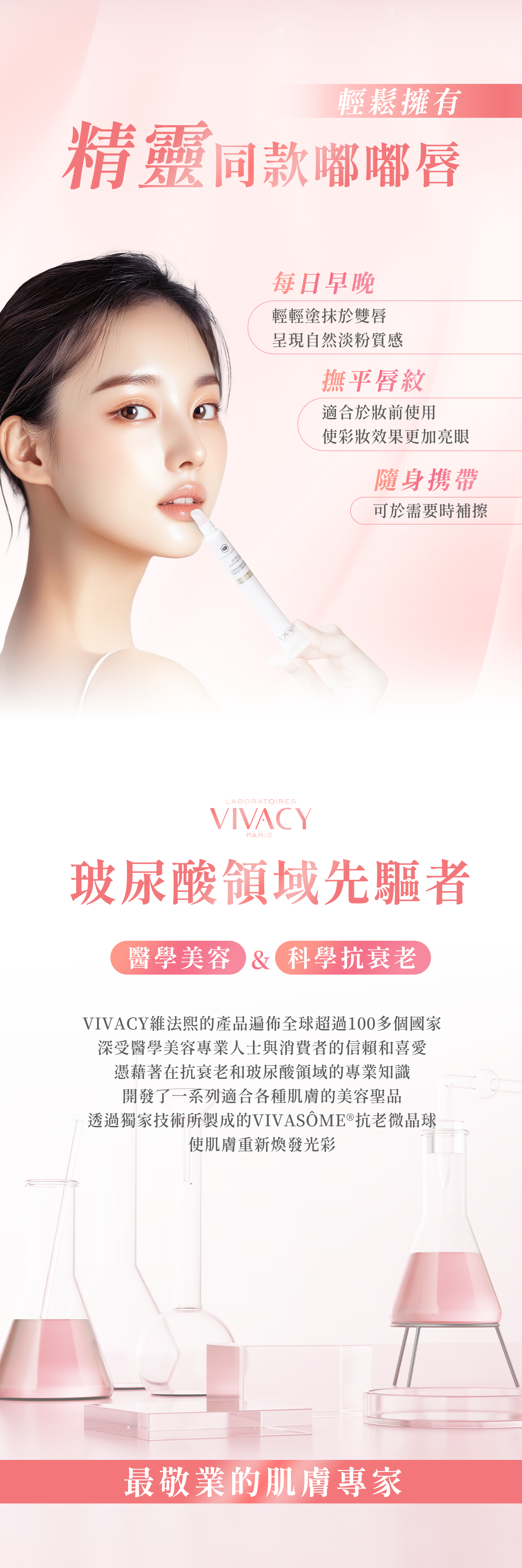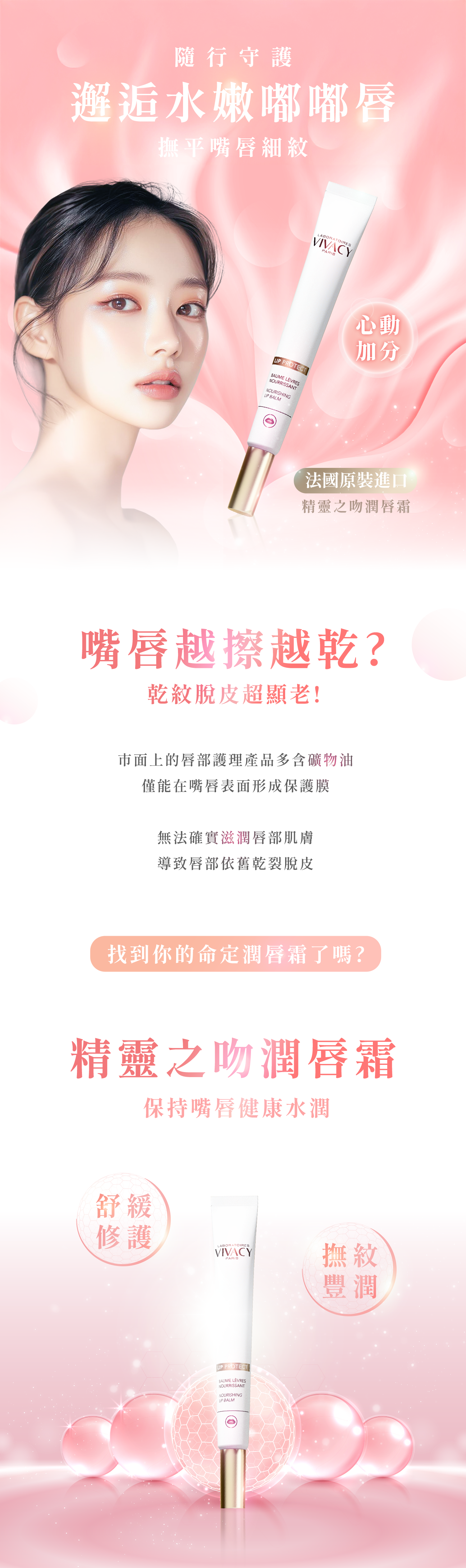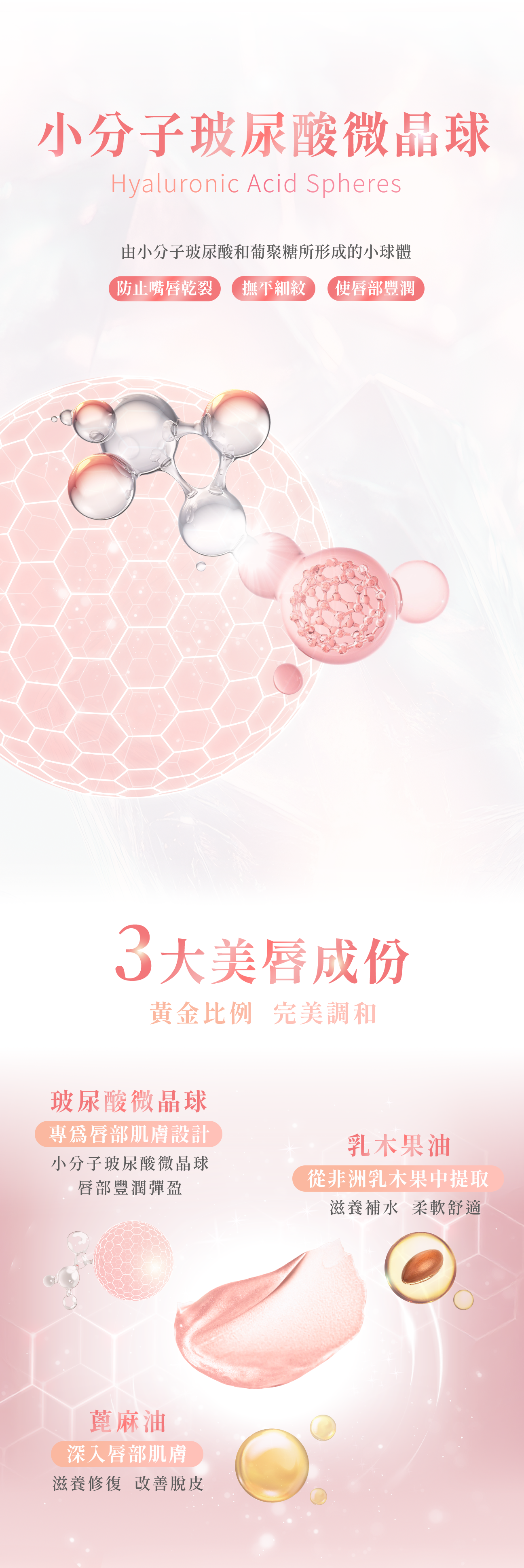 • 專為唇部選擇小分子玻尿酸微晶球、豐潤滋潤唇部