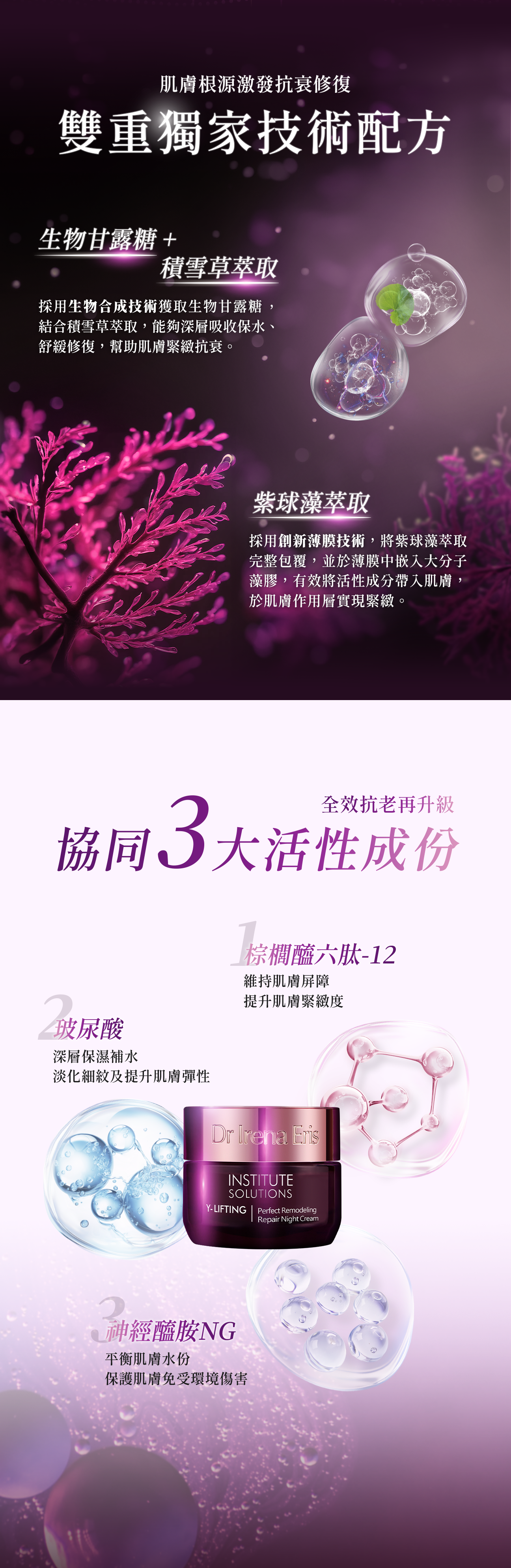 - 修護 夜間深層修護,為肌膚注入年輕活力
