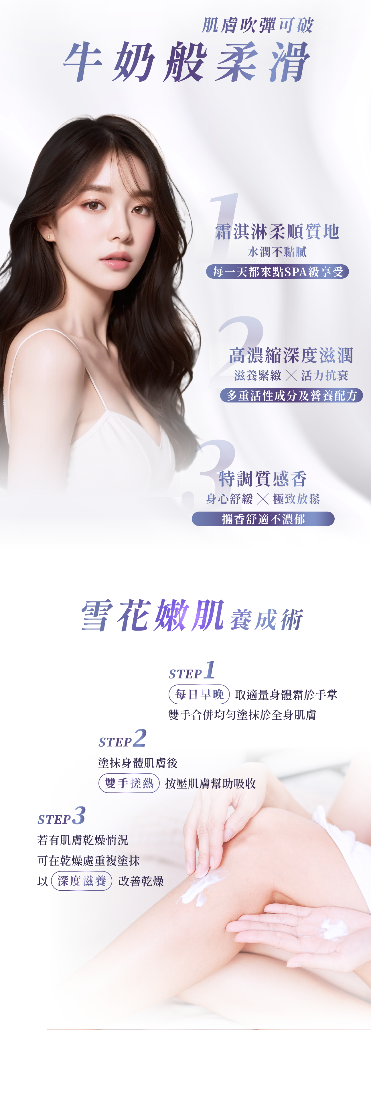 - 舒緩肌膚乾燥,平滑嫩膚