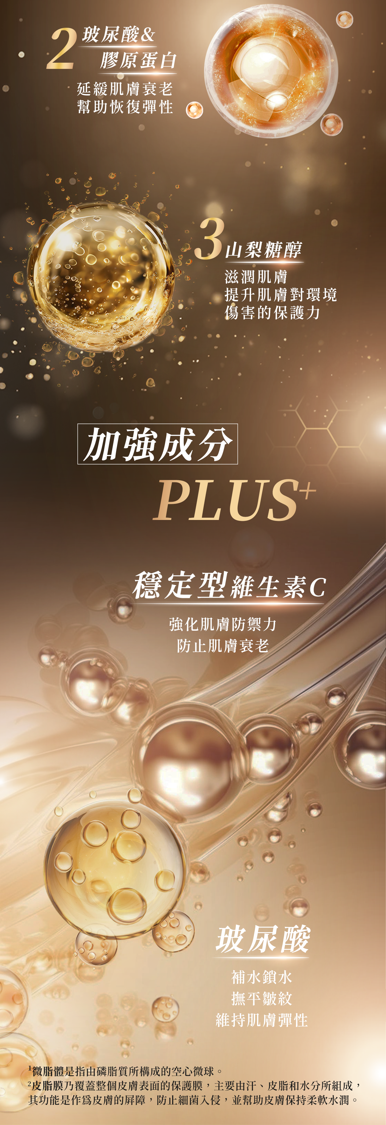 ❸玻尿酸和膠原蛋白助推器:全方位延緩肌膚老化。